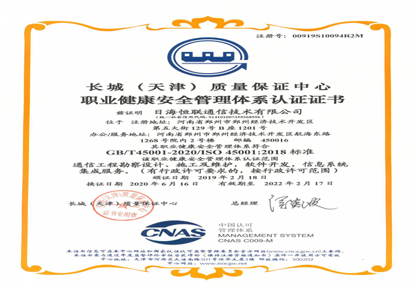 職業健康安全管理認證證書