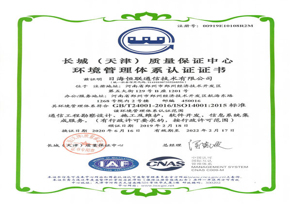 環境管理體系認證證書
