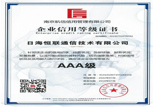 企業信用等級AAA級信用企業